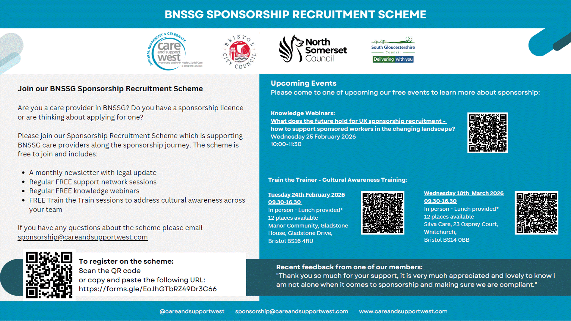 BNSSG Sponsorship Recruitment Scheme - Free Scheme for Care Providers